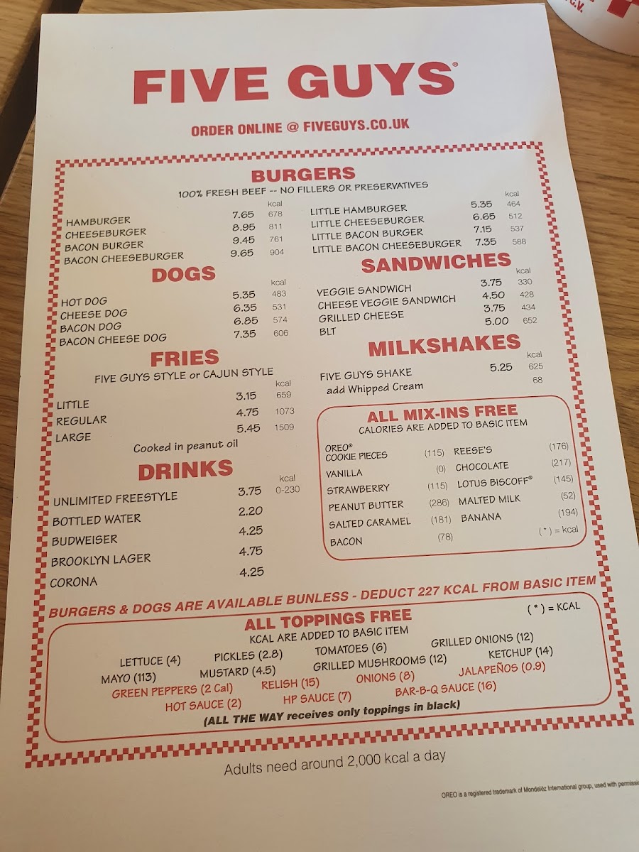 If you're craving a delicious burger and happen to be in Staines, the Five Guys Staines Menu offers a variety of mouth-watering options that are sure to satisfy your taste buds. Located at Unit S9b, Two Rivers, Staines-upon-Thames, Staines TW18 4BL, this Five Guys location serves up their signature juicy burgers, crispy fries, and milkshakes that are widely loved for their freshness and bold flavors.
